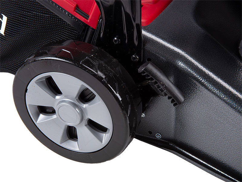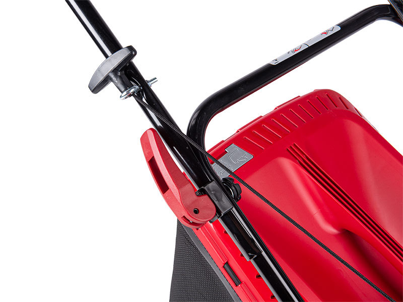 Výšku kosenia je možné nastaviť do 6 polôh (2,2 – 6,5 cm) centrálne pomocou jednej páky. Ku komfortu pri práci prispieva nastaviteľné ergonomické držadlo, ľahkú manipuláciu s ním zaručujú rýchloupínacie skrutky.Príslušenstvo