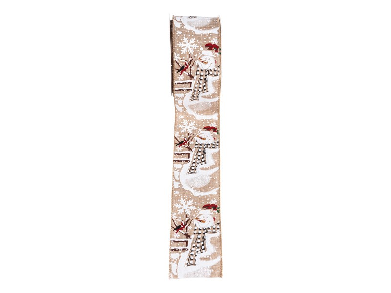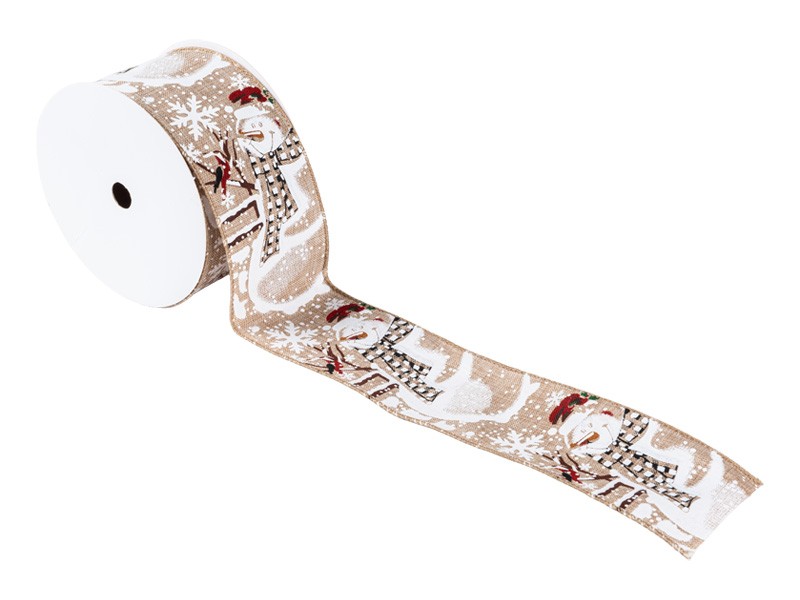 Béžová vianočná stuha so snehuliakom 6,3 x 910 cm