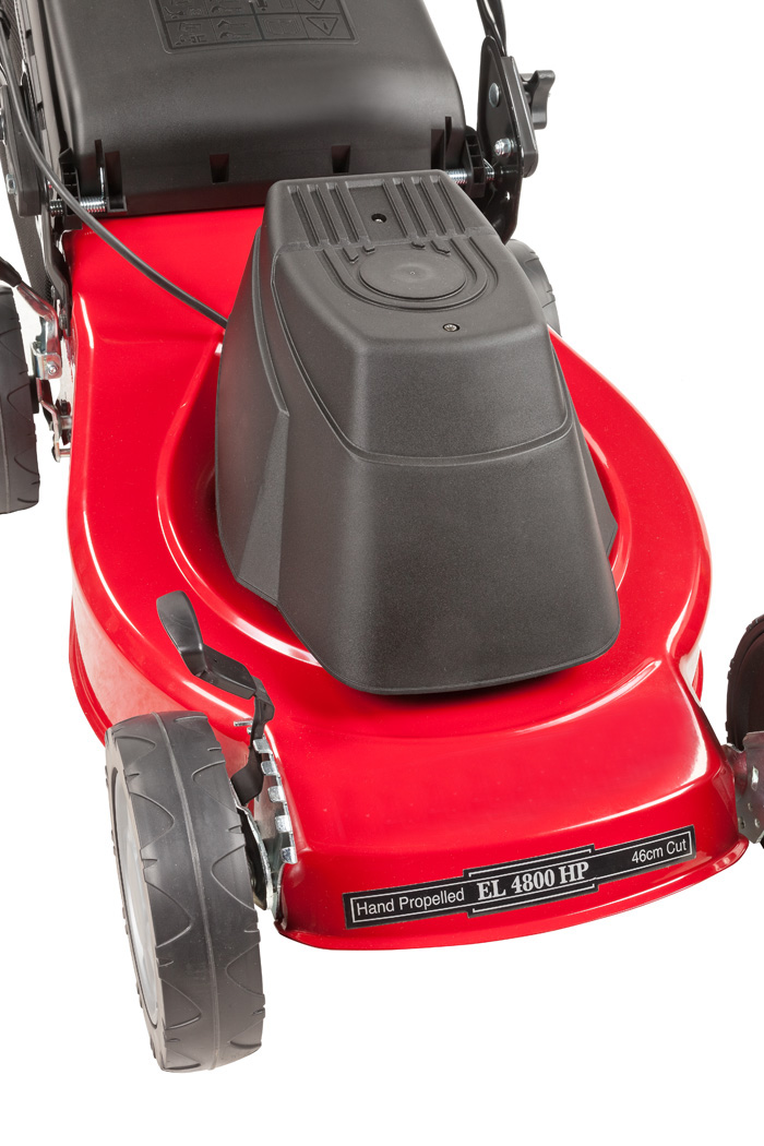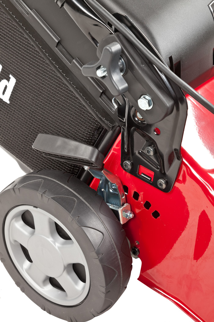 Výšku kosenia je možné pomocou dvoch pák nastaviť do niekoľkých polôh v rozmedzí 2,5 – 7,5 cm.