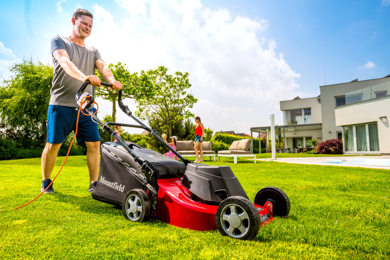 Elektrická kosačka s mimoriadne výkonným elektromotorom (1 800 W), záberom 46 cm a zberným košom s objemom 60 l.