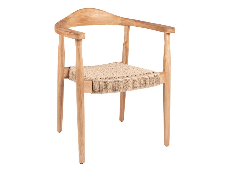 Jedálenská stolička MARON je symbolom nadčasovej elegancie a poctivého remeselného spracovania. Je vyrobená z vysoko kvalitného teakového dreva. Zaujme aj svojimi ladnými krivkami, ktoré plynule prechádzajú do pohodlných podrúčok a dodávajú celému kusu jemný a sofistikovaný charakter. Prírodné prútené sedadlo zdôrazňuje prirodzený šarm stoličky a vnáša do priestoru ľahkosť a harmóniu. Jej elegantný dizajn vyniká samostatne alebo v kombinácii s inými teakovými prvkami a ľahko vylepšuje celkovú atmosféru akéhokoľvek prostredia. Ďalším praktickým detailom je stohovateľnosť, ktorá umožňuje jednoduché skladovanie a manipuláciu.