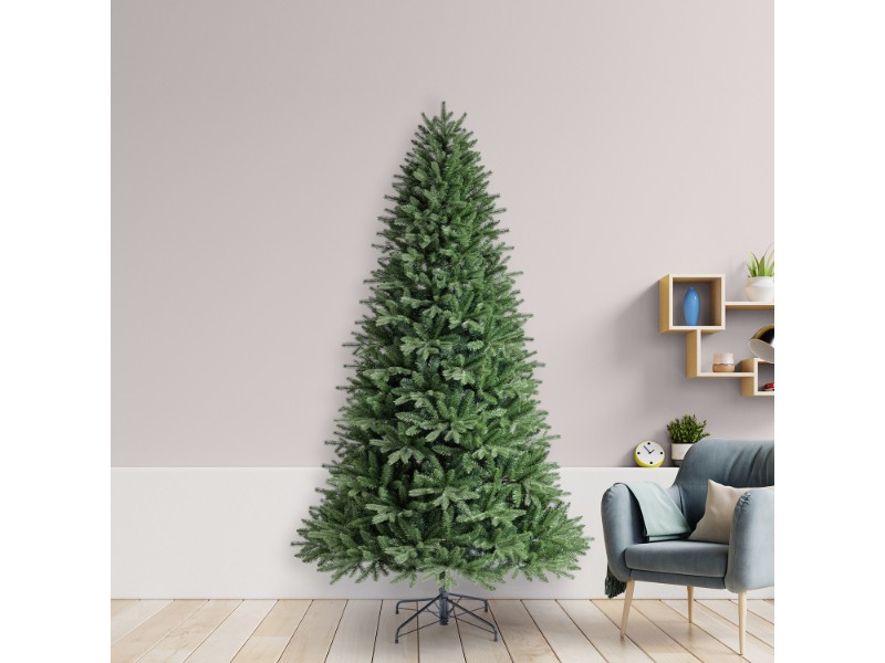 „Vianoce začínajú pri stromčeku. A s jedľou DELUXE vysokou 240 cm bude vaša sviatočná výzdoba naozaj neprehliadnuteľná. Tento majestátny stromček prináša do interiéru slávnostnú atmosféru, ktorú si zamiluje celá rodina – či už naň zavesíte tradičné ozdoby, moderné dekorácie alebo svetelné reťaze. Stromček je vyrobený z kvalitného PVC, ktoré verne napodobňuje vzhľad skutočnej jedle. Husté vetvenie a prirodzený tvar zabezpečujú bohatý a elegantný vzhľad zo všetkých uhlov. Kovový stojan dodá stromu stabilitu a umožní jednoduché zostavenie.