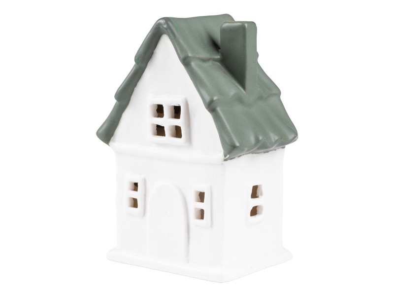 Keramický domček so zelenou strechou 12x8,3x16,3 cm LED