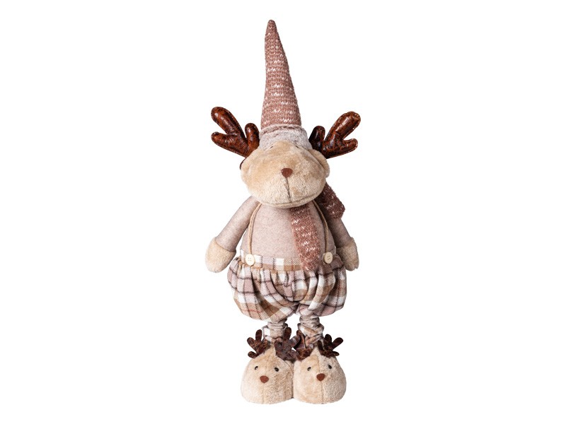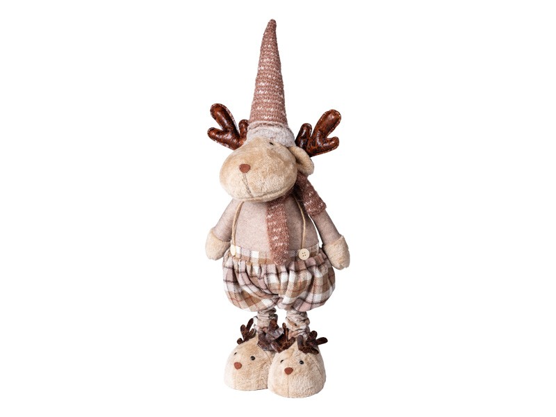 Tento veselý sobík v šortkách je ideálnym doplnkom zimnej a vianočnej výzdoby. Vďaka teleskopickým nohám je možné jeho výšku nastaviť až na 111 cm, takže sa ľahko prispôsobí rôznym priestorom – či už ho postavíte do predsiene, k vianočnému stromčeku alebo do detskej izby. Jeho mäkké plyšové vyhotovenie a hravý vzhľad z neho robia obľúbenú dekoráciu, ktorá poteší malých aj veľkých a vnesie do domácnosti radostnú atmosféru.