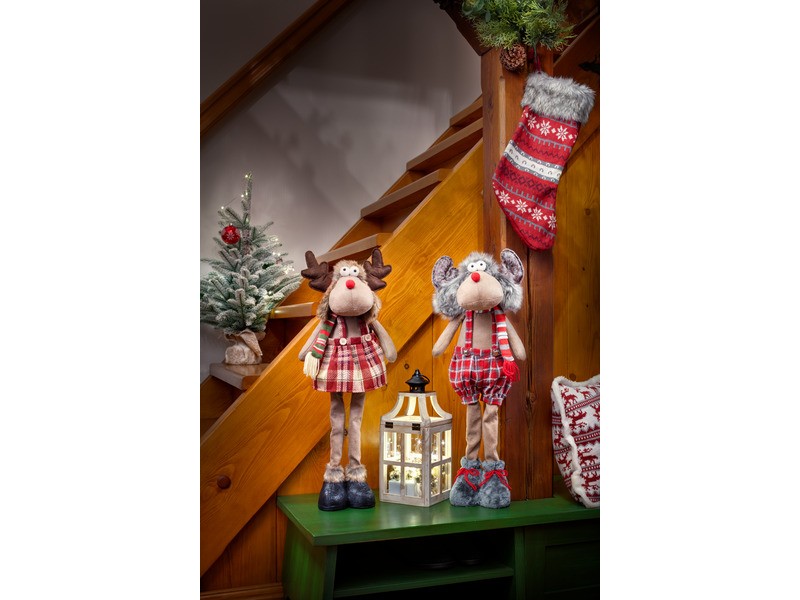 Vytvorte úžasnú vianočnú atmosféru s týmto 60 cm vysokým textilným stojacim sobom. Vďaka svojmu detailnému dizajnu a roztomilému výrazu tento sob prinesie do vášho domova dávku radosti a vianočného kúzla. Prejavte svoju vianočnú náladu a nechajte tohto látkového soba ozdobiť váš domov. Pridajte si ho do košíka a tešte sa na pôvabnú a očarujúcu vianočnú dekoráciu!