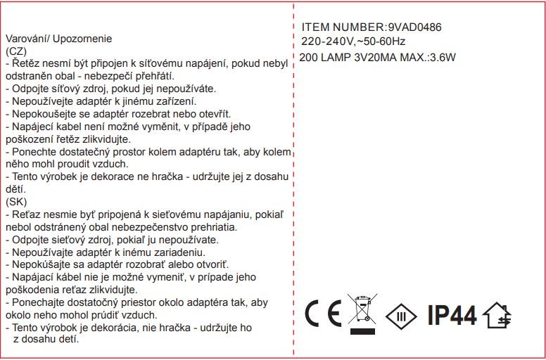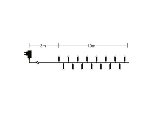 Svetelná reťaz svieti bielym svetlom v teplom podtóne. Meria 10 m a má 200 LED.