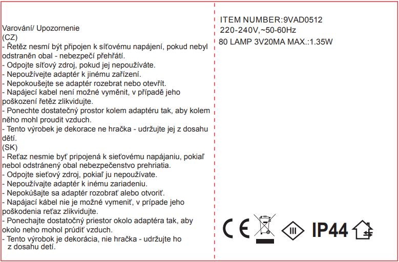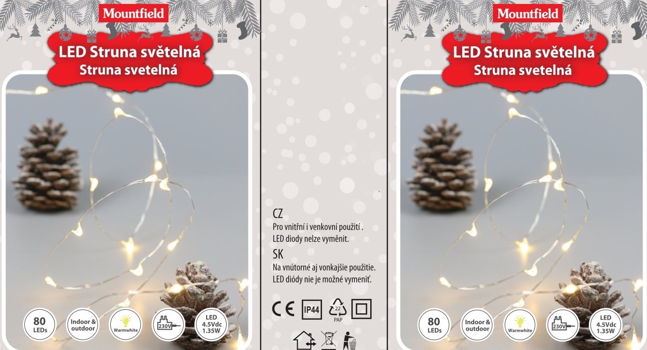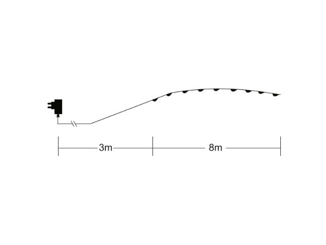 Ozdobná struna s drobnými svetielkami (80 ks). Svetlo je biele s teplým podtónom. Je vhodná do interiérov aj exteriérov. Na zastrčenie do zásuvky.