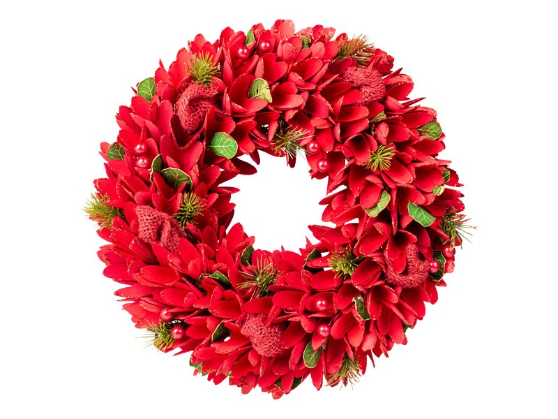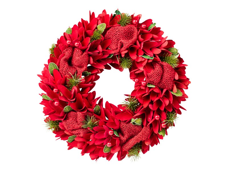 Klasický červený vianočný veniec z juty s priemerom 36 cm dodá vášmu domovu slávnostnú atmosféru počas celého adventu aj sviatkov. Vďaka starostlivému spracovaniu a výraznej farbe krásne vynikne na dverách alebo stene.